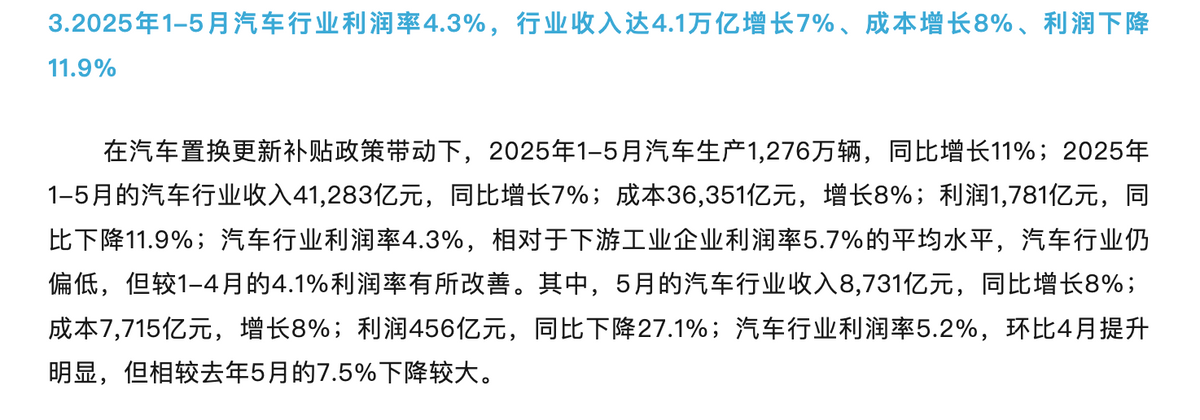 這也是為什么2025年上半年,整個汽車行業的銷量增長了11%,收入增長了7%,但利潤卻下降了近12%。
