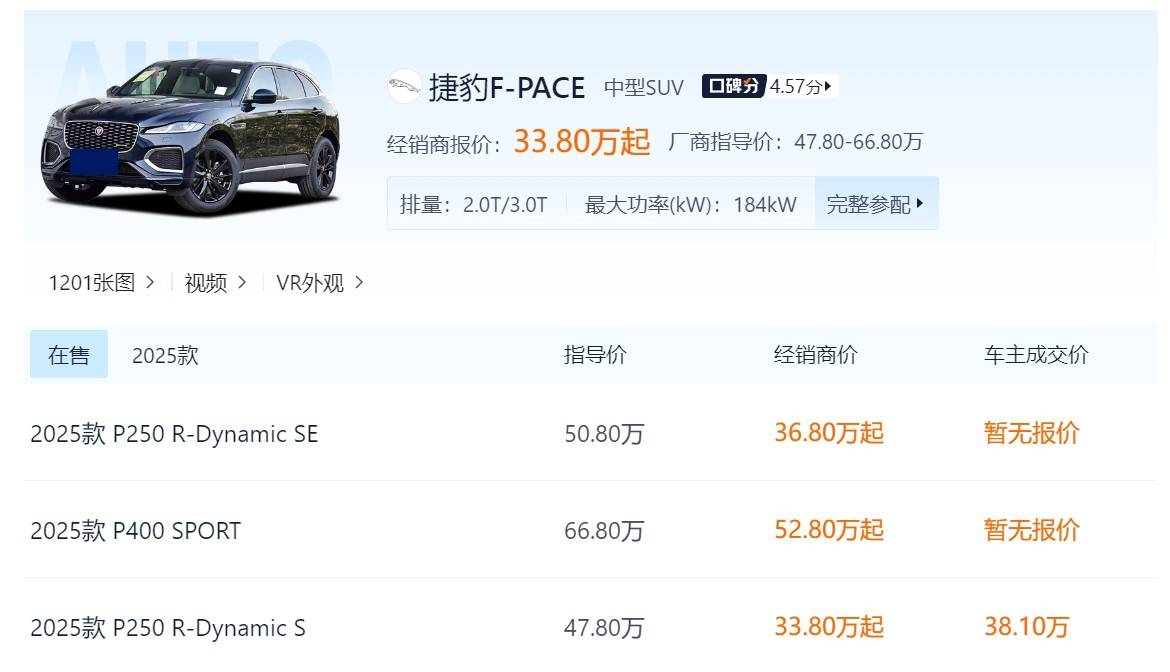 今天看到有博主發文:稱捷豹F-PACE 白黑 2024款 SE版本,指導價50.2萬那款,現在全款直落裸車價已經只需要24.5萬就能夠買了,而要求則是僅需在店內購買保險即可。