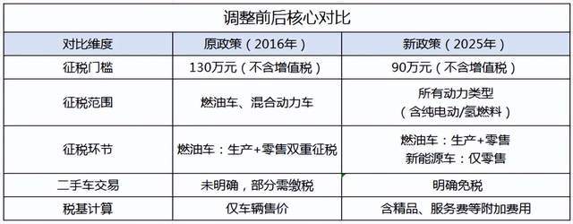 與2016年版的原政策相比,新政策在消費(fèi)稅征收門(mén)檻、征收范圍、二手車(chē)交易、計(jì)稅依據(jù)等方面都做了較大調(diào)整。