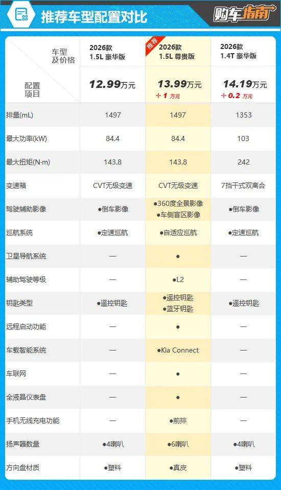 綜合來看,如果您正在關(guān)注2026款起亞賽圖斯,那么1.5L CVT尊貴版在購買時可優(yōu)先考慮。