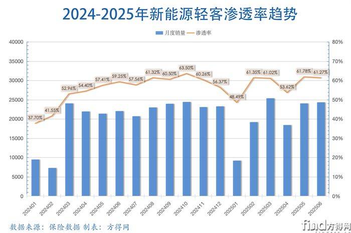2024年1月至2025年6月,輕客市場有15個月滲透率超過50%,近一年有8個月新能源滲透率超過60%,市場信號非常明顯。