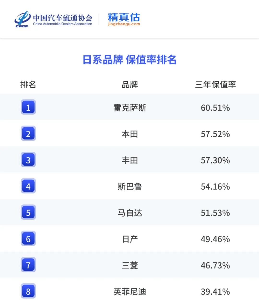 論保值,雷克薩斯是日系品牌三年保值率冠軍。據(jù)《2025上半年中國汽車保值率研究報告》,該品牌整體以60.51%的三年保值率,穩(wěn)居日系品牌榜首。ES系列以63.89%,位列進口中大型車第一;NX系列則以56.18%,躋身進口中型SUV前三。