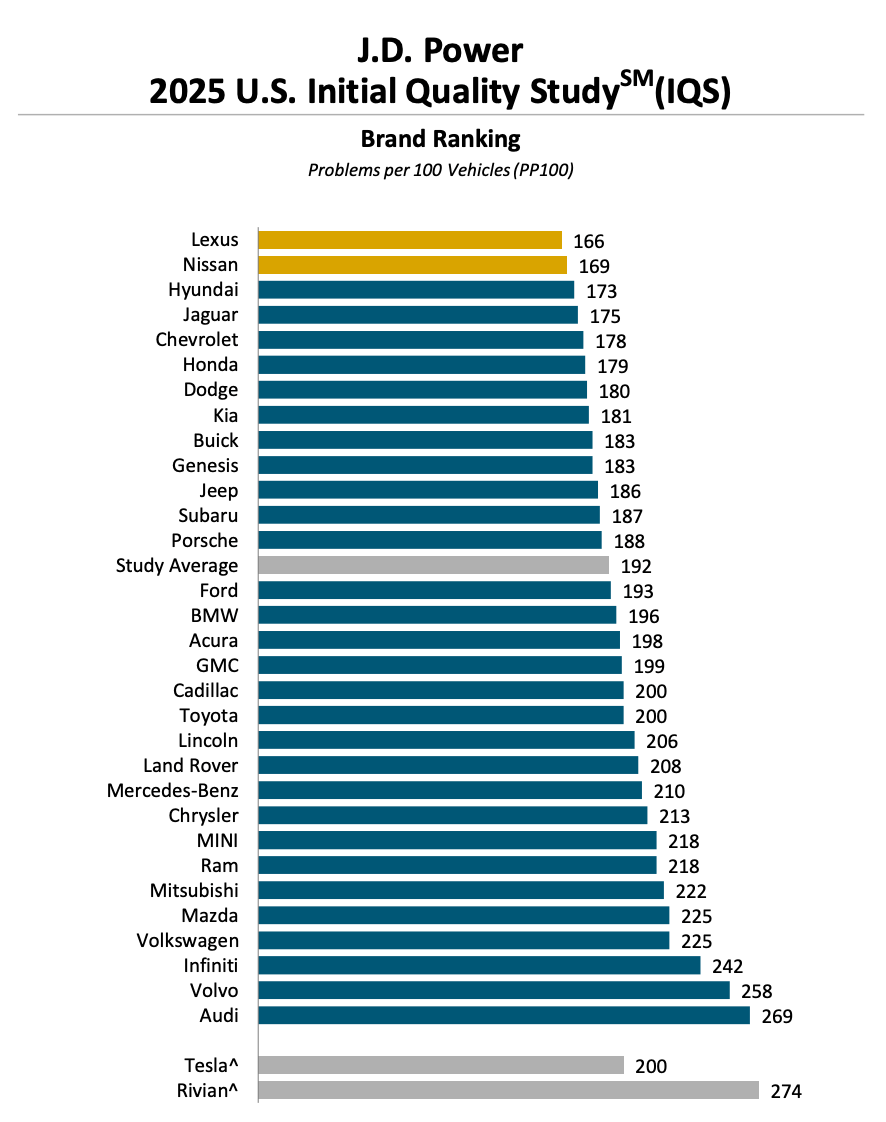 論質量,雷克薩斯斬獲J.D. Power2025年美國新車質量調查(IQS)全品牌第一,成為問題最少的汽車品牌,領先所有進口豪華與主流品牌。