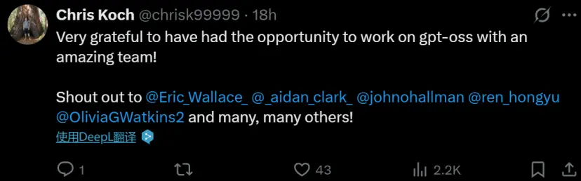 OpenAI發(fā)布的gpt-oss系列模型的核心團隊成員之一,就有參與多個項目的北大校友任泓宇。