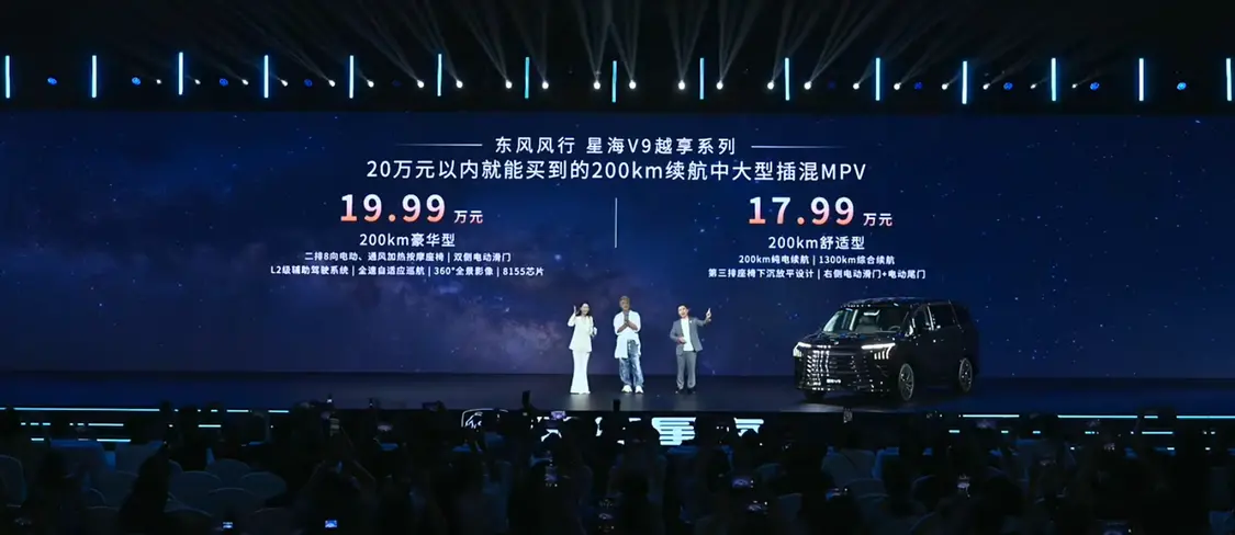 8 月 21 日消息,2026 款東風風行星海 V9 越享系列中大型插混 MPV 車型今日正式上市,售價 17.99 萬元起,IT之家附定價: